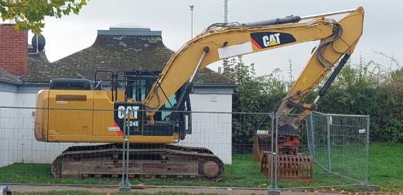 Es ist schon erstaunlich - da steht nur ein einsamer Bagger auf dem Sportplatz